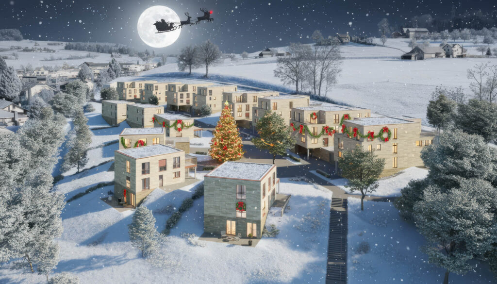 Die Erschliessungsarbeiten (Strasse, Wege, Kanalisation etc) starten am 11. August 2025 und dauern bis ca Frühjahr 2026.