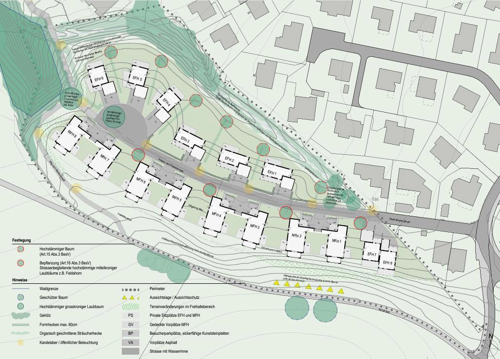 Es geht den Rekurrenten vielmehr um den Schutz von privaten nachbarlichen Interessen. Diesbezüglich ist zu erwähnen, dass auf den Flächen, die am Nächsten bei den Liegenschaften der Rekurrenten sind, kleinere Bauten erstellt werden sollen als solche, die nach den Bauvorschriften gemäss der geltenden Grundordnung (Baureglement, Zonenplan) zulässig wären.
